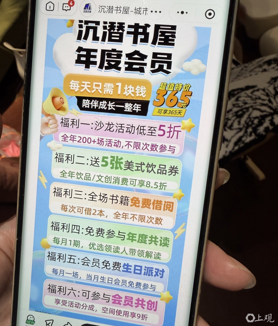 潘潘向记者“安利”千里潜书屋的年度会员权柄。施晨露摄
