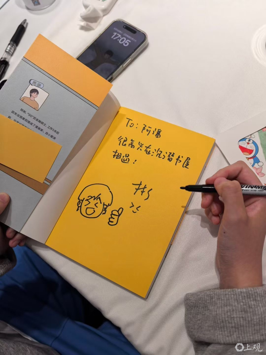 在千里潜书屋与作者面临面并得到签绘,是潘潘的崇尚。(受访者提供)