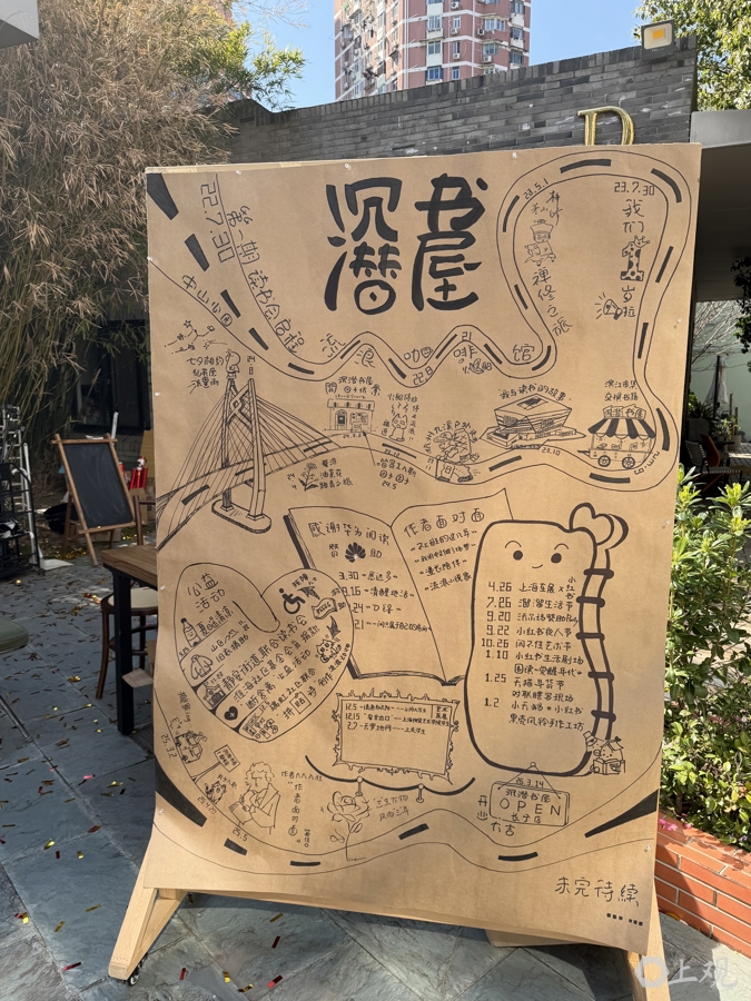 开业当日,书屋门口的看板先容了念书会一齐走来的历程。施晨露摄