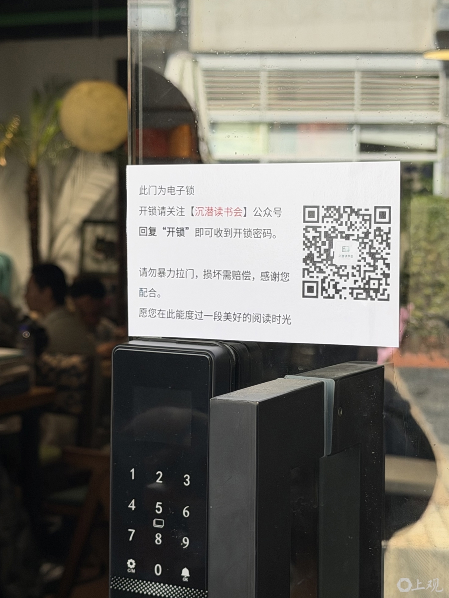 现时,千里潜书屋长宁店在今夜时段收受自助工作模式,关注念书会账号,发送要道词,就能收到开锁密码。听取书友的提出,这个小小的动作是唯独的门槛。