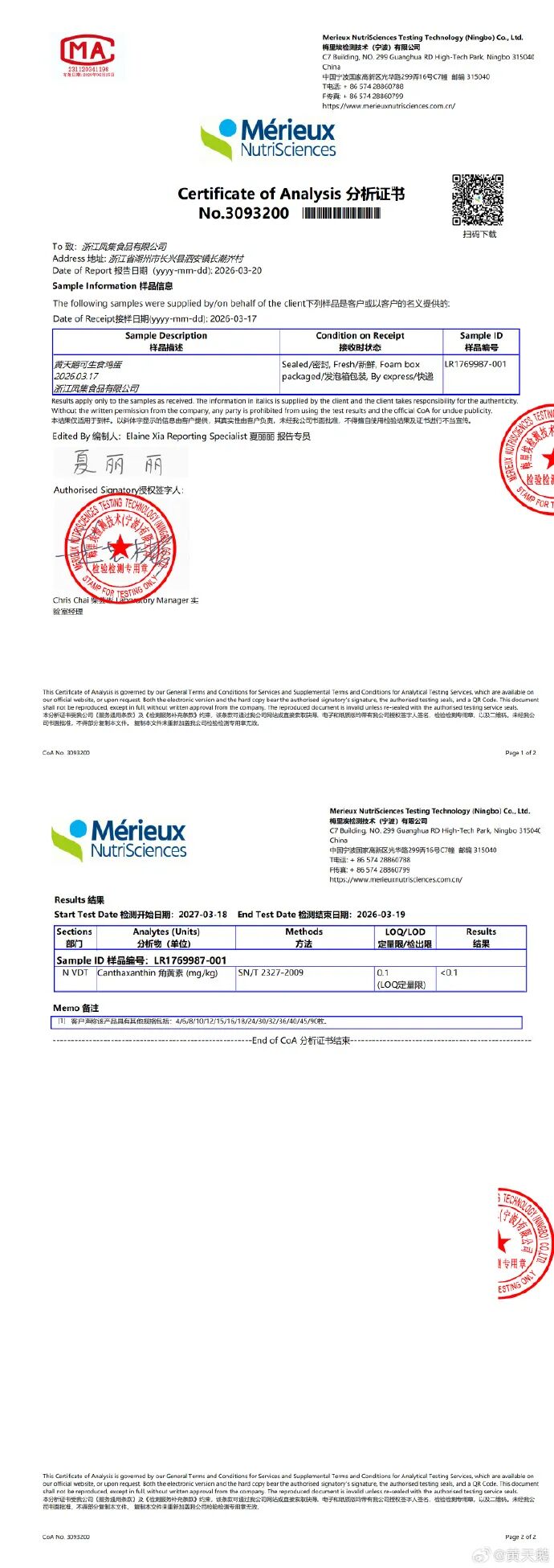 近期,对于黄天鹅鸡蛋角黄素话题激发了宽泛原谅,给众人带来了疑虑和担忧,对此咱们示意最真挚的歉意!事件发生后,企业坐褥基地场地的监管部门高度原谅,赶快对关系居品组织抽检;同期,企业立即开展自检。现在,三地监管部门抽检及企业自检的检测成果已反映至企业,东莞股票配资均为黄天鹅鸡蛋未检出角黄素(检测敷陈附后)。黄天鹅真诚地接待奢华者、公众、媒体及社会各界合手续监督,在此,咱们扫视本心如下:
