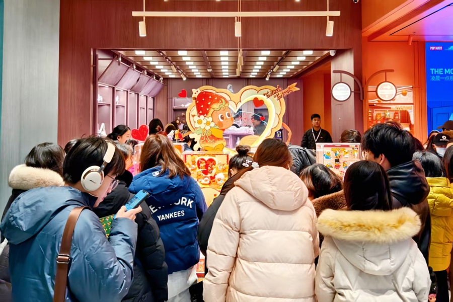 泡泡玛特上海城市旗舰店内人头攒动。