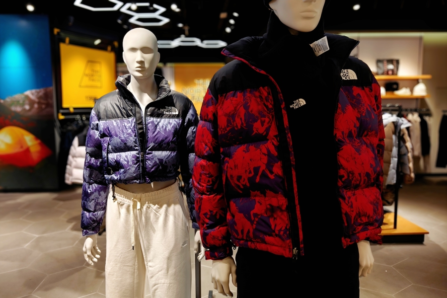 步入第一百货商业中心,记者看到美国运动户外品牌北面THE NORTH FACE推出的马年系列冬装,从“火马”概念中汲取灵感,产品融入了奔马剪影与测绘纹样,主要在中国市场发售。据专柜工作人员反馈,该款式自2025年12月底上市后,受到消费者喜爱,部分配色一度断码,几十件现货已几乎售罄。