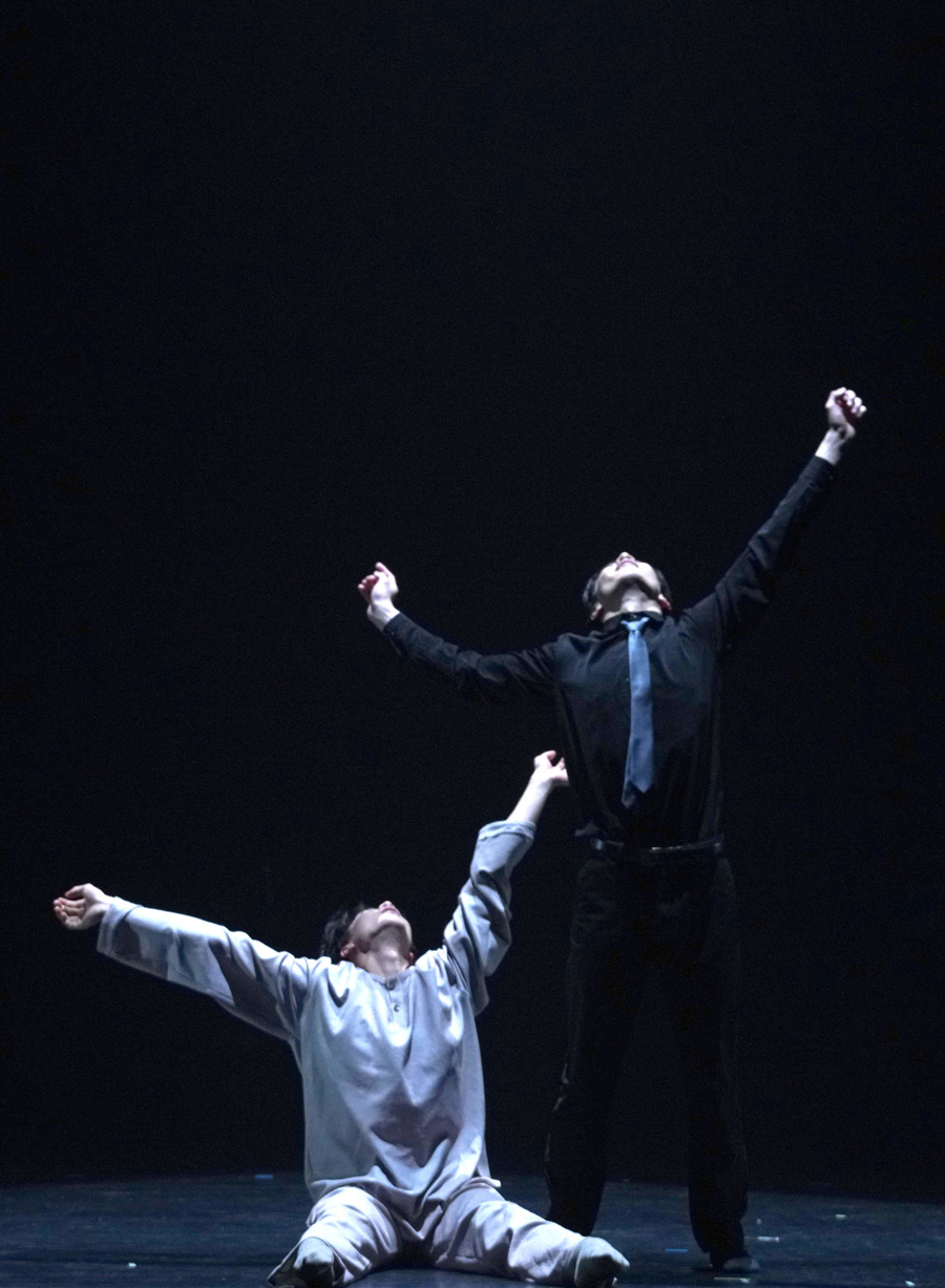 这一届展演中,相当数目的作品直面现代东说念主的精神逆境,但并不啻于“呈现不幸”——它们在抗争中寻找出口。独舞《含笑遗民》聚焦“强制含笑”的自我浪费,给出的谜底不是控诉,而是弃取裂痕,于破灭处重塑竣工本真;双东说念主舞《起而行》以西装与寝衣为喻,勾画安定与背负的博弈;男人群舞《山月行》自狼狈迷惘而至涌现洒脱。现代舞作品《荏苒》《我仍在场》《闪避于消失之中》直面消失,最终指向拥抱人命本竟然勇毅。