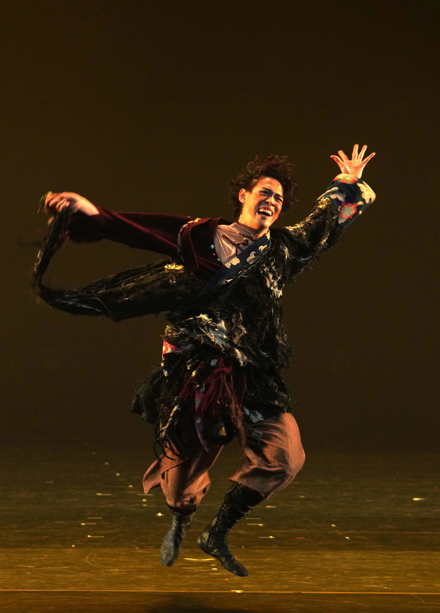 向内深掘的代表是藏族独舞《心域》。作品以雪山、草原、登顶三境为喻,对话东说念主生求索之路。“旭日磅礴于死后,每一次腾踊与存身,王人是人命朝上的诚挚独白。”编导莫得停留在民族风情的名义呈现,而是将藏族跳舞语汇滚动为普世的人命叙事。