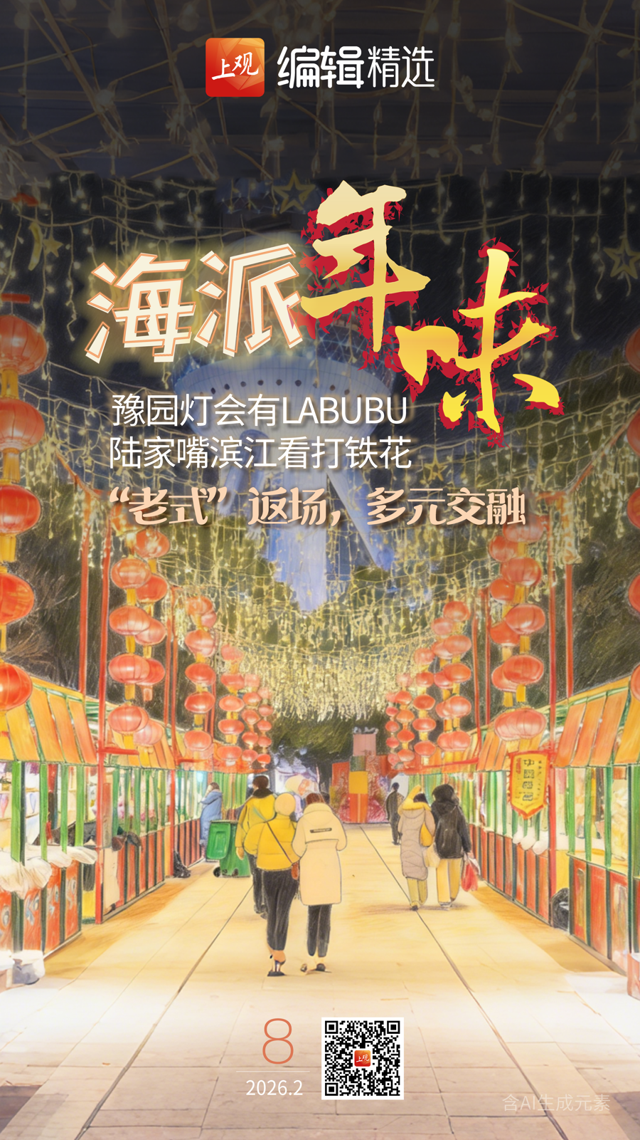 附近春节,上海街头一片“火红”脑怒,万“马”奔腾,年味越来越浓。传统与当代和会催生新年味,非遗打铁花点亮滨江;情东说念主节遇上近11年最晚春节,年宵花阛阓相配火爆;“马尔福”恐怕走红,中国文化以最松驰最活泼的姿态融入各人闲居。要过年了,我们老匹夫要状态!一皆状态!