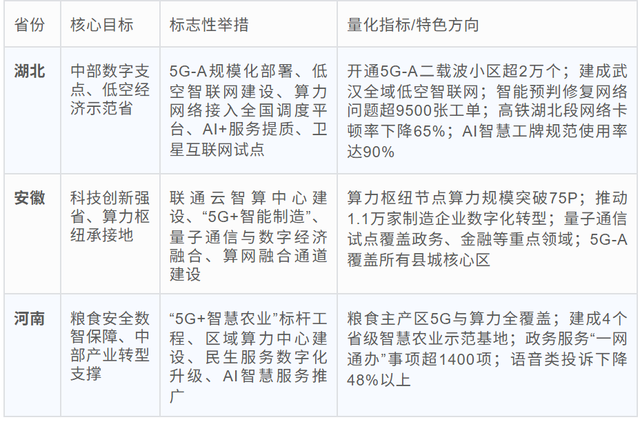 ○中部省份:聚焦食粮安全、先进制造业、低空智联网,推动“5G+明智农业”、区域算力中心成就,齐集湖北低空经济试点打造特质场景,引申AI明智工牌等行状模式。