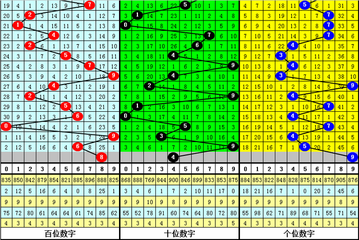 百位分析:最近50期说明较热的号码有:2、4出现8次,1出现7次;说明较冷的号码有:3、8出现1次,5出现4次。出号奇偶比为22:28,012路比为17:20:13。本期该位绝杀两码1、2,参考号码0、4、8,精选一码8。