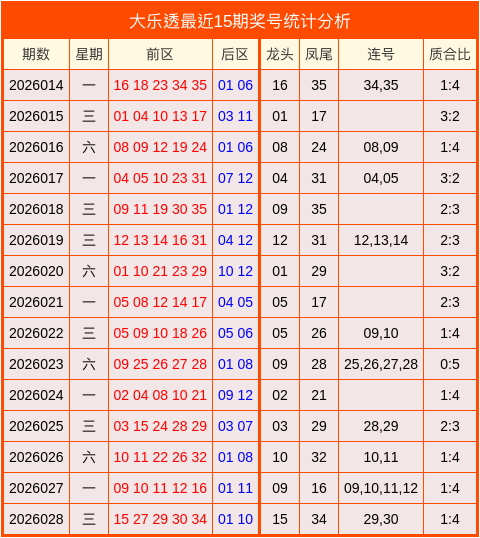 大乐透最近15期分析